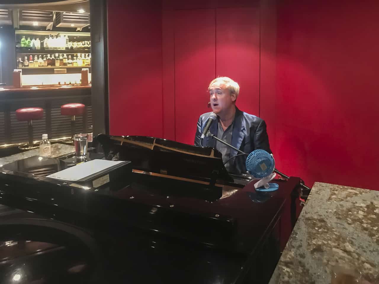 シャンパンとピアノの男ジェフ私たちがクレジットを取るべきかどうかはわかりませんが、おそらく私たちはちょうど遅い夜にやって来ましたが、ピアノバーはクイーンズラウンジでのショーの間に船の中で最もホットな場所になりました。デイブと私は、実際にメインの講堂での多くのショーよりもジェフを好み、代わりに彼の話を聞いていました。