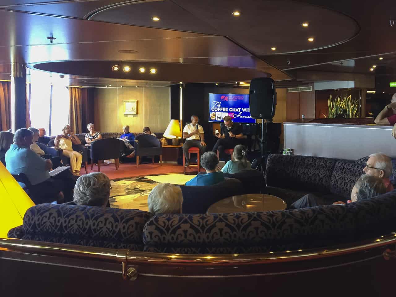 クルーズでも多くのことを学ぶことができますヨットからポリネシアの歴史まで、毎日学ぶのに魅力的なことがありました。それらは、PowerPointのプレゼンテーションを備えたクイーンズラウンジで起こりました。または、インタビューとコメディでより親密な環境で行われました。どちらを好むかは大丈夫です。