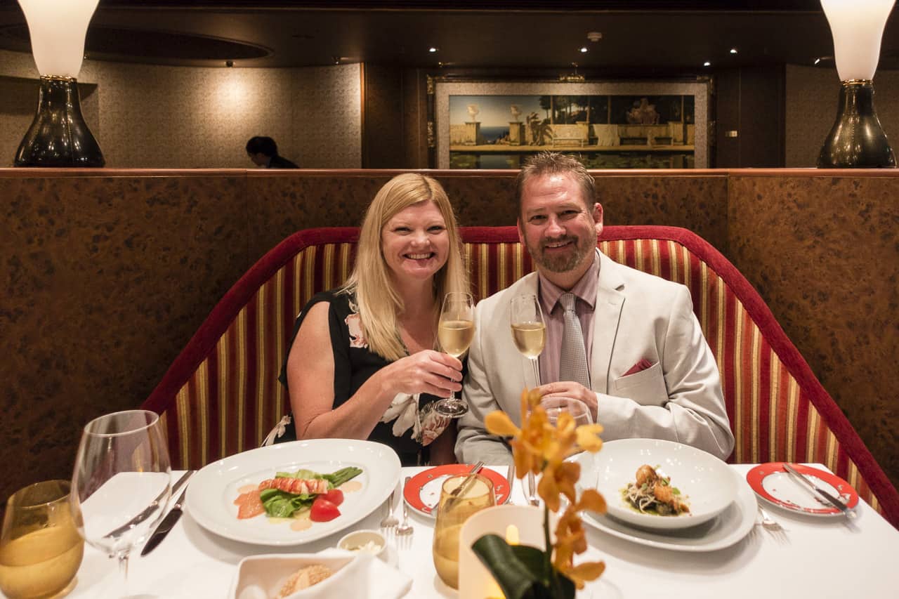船の残りの部分と同様に、スタッフは私たちをすぐに知り、毎晩名前で私たちを歓迎しました。彼らは私たちの好みの飲み物と、私たちが夕食に選ぶでしょう。