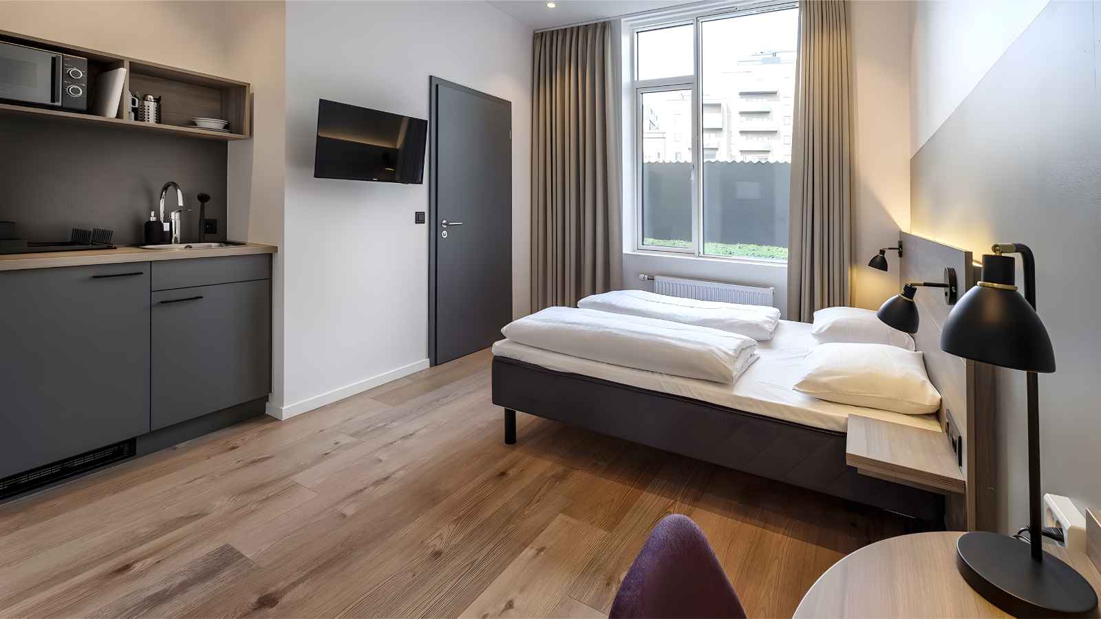 写真クレジットCPHスタジオホテルCPH Studio Hotelは、2つのメトロ駅からわずか5分の手頃な3つ星ホテルです。すべての部屋には、洗練されたデンマークの家具があり、専用バスルームとキッチンが装備されています。