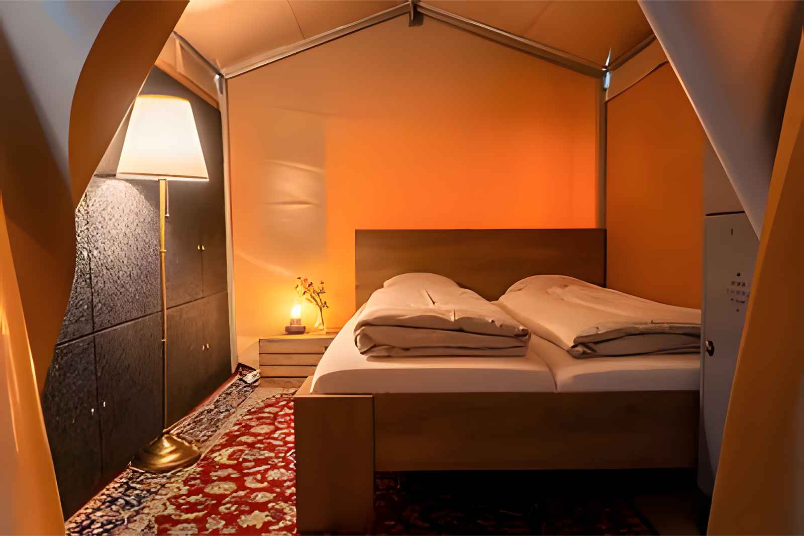 テントはすべて広大な建物の中に設置されているため、すべてがまだ暖房とACで屋内にあります。 1つのテントは最大4人に合うことができ、テント全体を80ドルで借りることが可能です。シングルベッドは通常、1泊あたりわずか20ドルです。コペンハーゲンにとっては大いなることですが、ベッドはあなたが得るすべてです。料金と可用性については、こちらをご覧ください