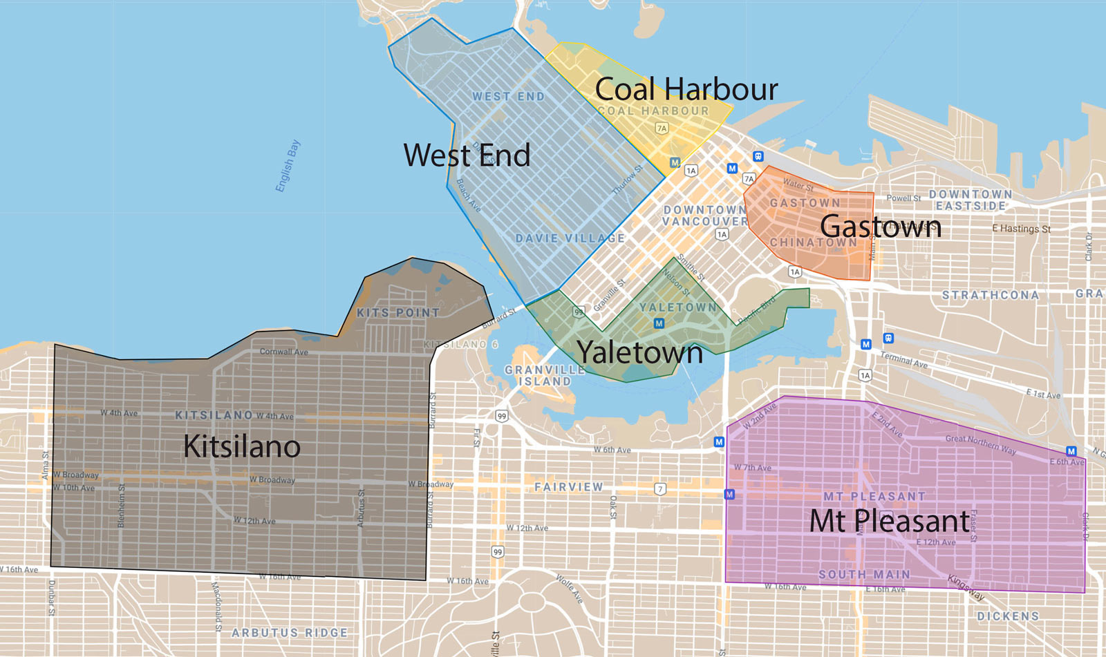 私たちは、すべてダウンタウンエリアに拠点を置くバンクーバーのトップ6の近所に焦点を当てることにしました。ノースバンクーバーを見ることはできますが、ライオンズゲートブリッジ、または空港のあるリッチモンドで交通と戦う必要がありますが、バンクーバーの最高の体験をしたい場合は、バンクーバーのダウンタウンに滞在することをお勧めします。