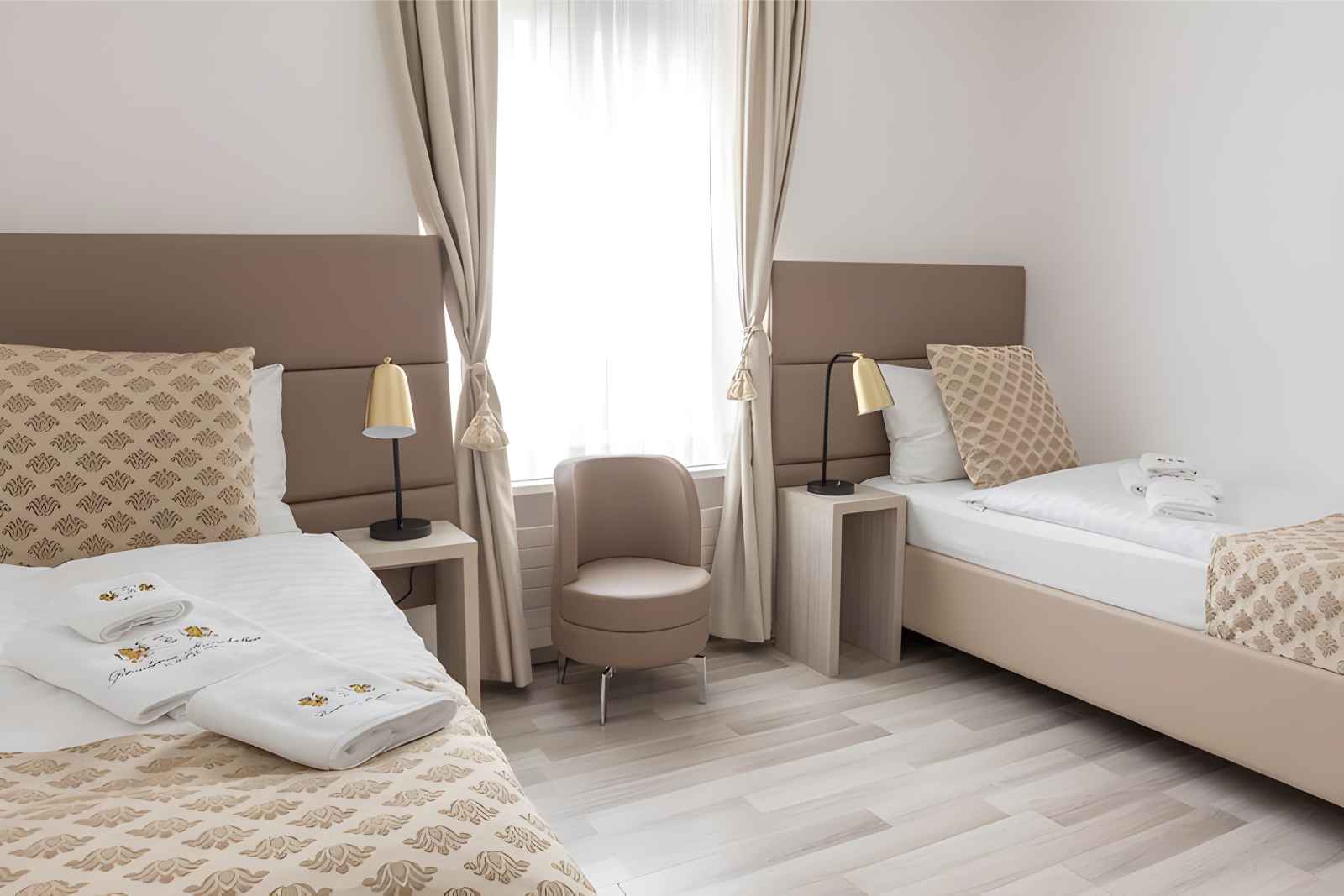 ホテルの部屋は洗練されたモダンで、ツインベッドまたはダブルベッドがあります。ツインベッドのある部屋がより手頃な価格で、オフシーズンの1泊220 chfから始まることは注目に値します。特に朝食も価格に含まれているので、これはチューリッヒにこのような中心的な場所があるホテルにとっては本当にお得です。