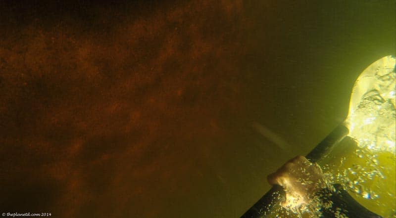 私は直立し続けるために全力でボートと戦い続けました。腰を反対方向にフリックし、パドルを使用して水を覆います。