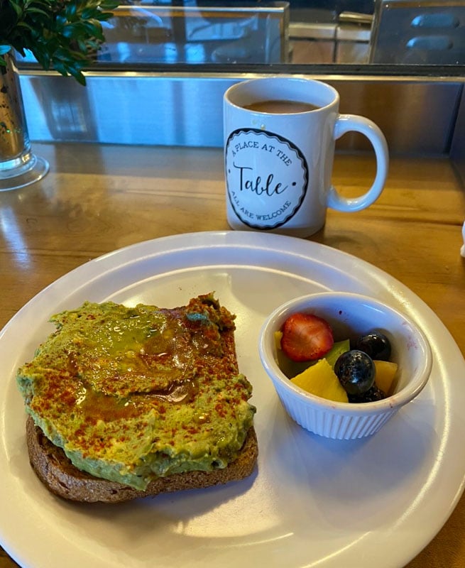 おいしいことを楽しむことができます朝食サンドイッチ、心のこもったスープとサラダのコンボ、または新鮮なペストリー、提案された価格を支払うことができればもう少し、または必要に応じて少し少ない(またはボランティア活動)。コミュニティ、優しさ、おいしい料理の美しいモデルです。