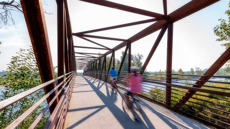 グリーンベルトはボイジー川に沿って走る 40 km (25 マイル) の小道で、素晴らしい川の景色、ほとんどが舗装されたトレイル、橋、そしてたくさんの木陰を楽しめます。
