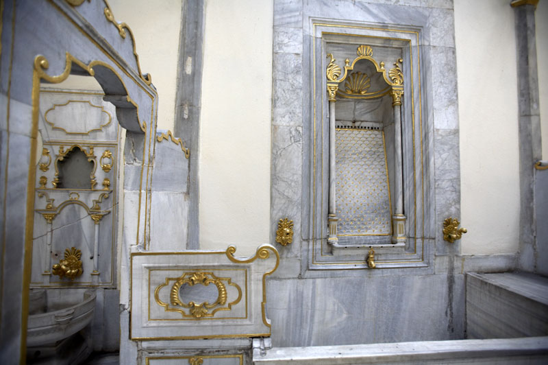 部屋の中央には、16世紀のトルコのハマムをモデルにした丸い大理石のデイがありました。